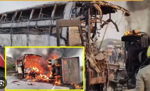 आंध्र प्रदेश सड़क हादसा: भिड़ंत और आग से मौतों की संख्या बढ़ी