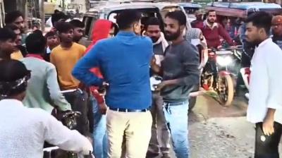 हाथ जोड़ता रहा युवक, चप्पल से वार करती दिखी महिला